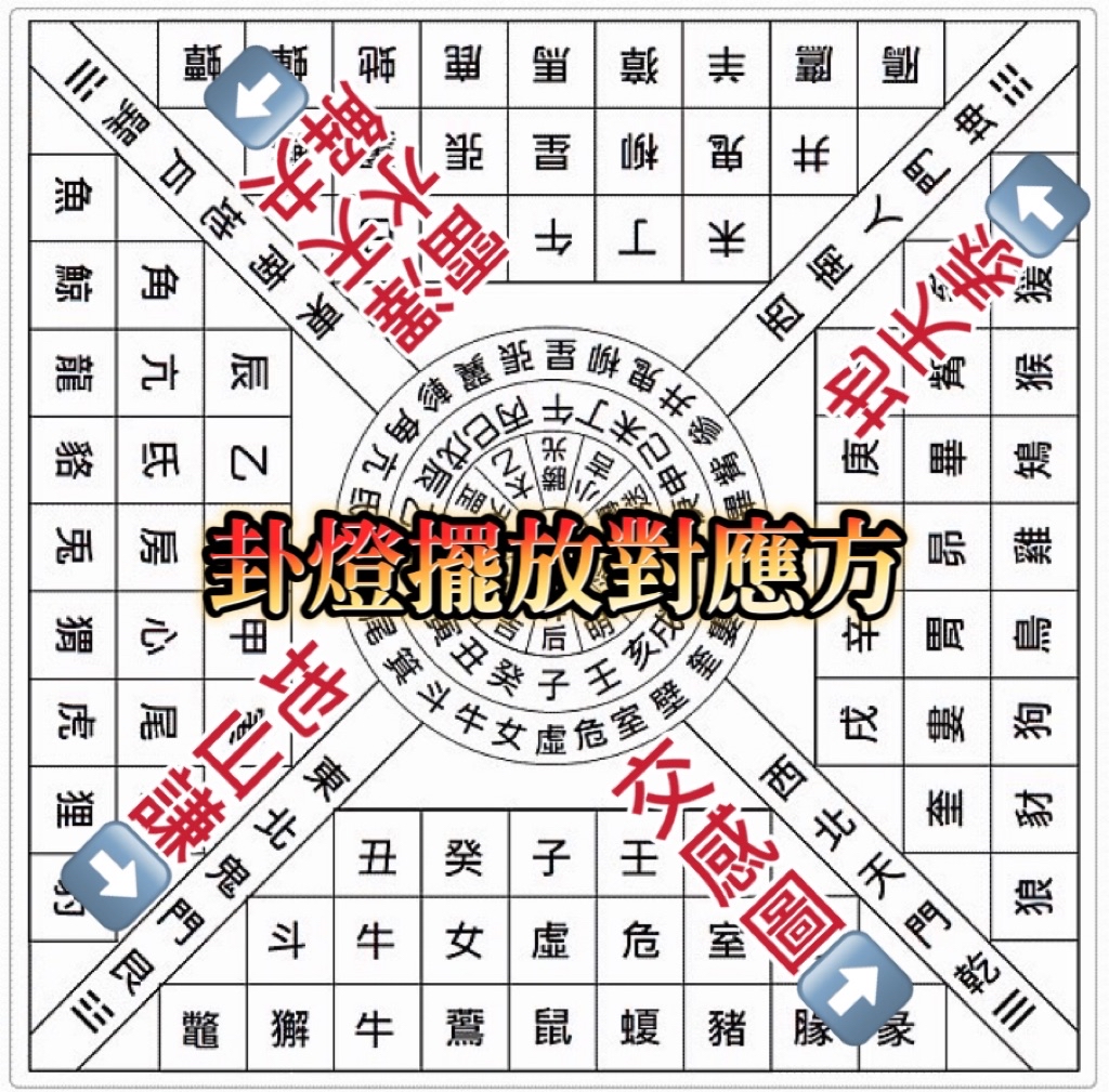 ⚠️以上產品的方位是按照整套這整套的方式來佈局的,可以選擇以房間的中心點來佈局,也可以以整家的方位中心點來布局唷,請勿改變方位。燈的高低不影響,只要在對的方位即可,圖騰面朝室內擺,燈光可以以紅色、黃綠色、七彩閃爍轉換皆可。