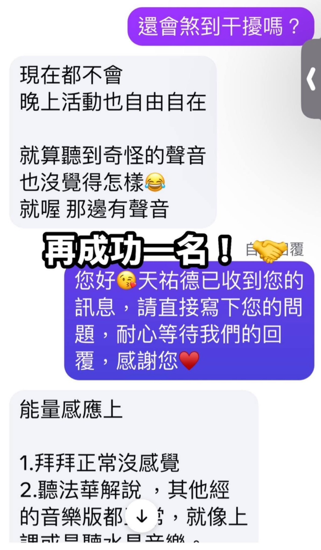 👇以下是透過天祐德正念教育課程讓一直受干擾、沖煞、一生都無法擺脫的靈異體質(俗稱敏感體質)所苦的人得到解脫的學員分享實例🔻🔻🔻🔻🔻