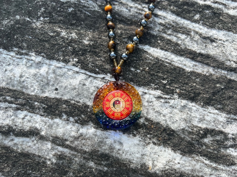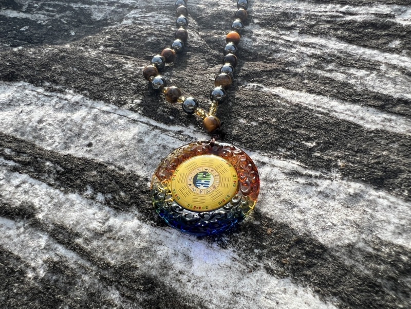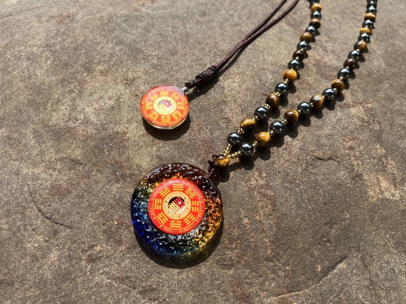 (需要佩戴對應於胸前才有用,項鍊總長40公分、墜飾圓徑4.5公分、重量含能量石項鍊約87克)