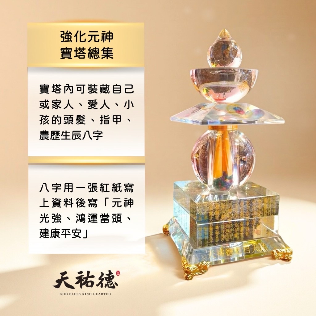 ❤️寶塔能提升自身能量,還能放入祈願,寫「某某某 元神光強」,也能增益自身能量,為元神開光加強的概念,當然招財催旺開運‼️