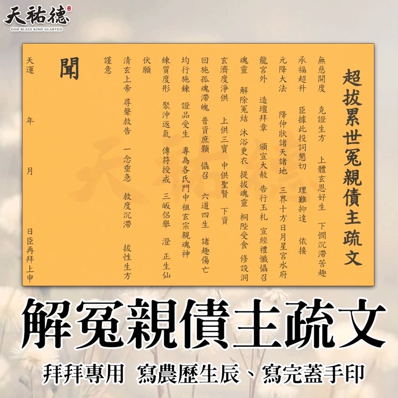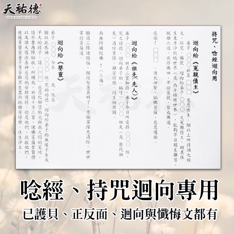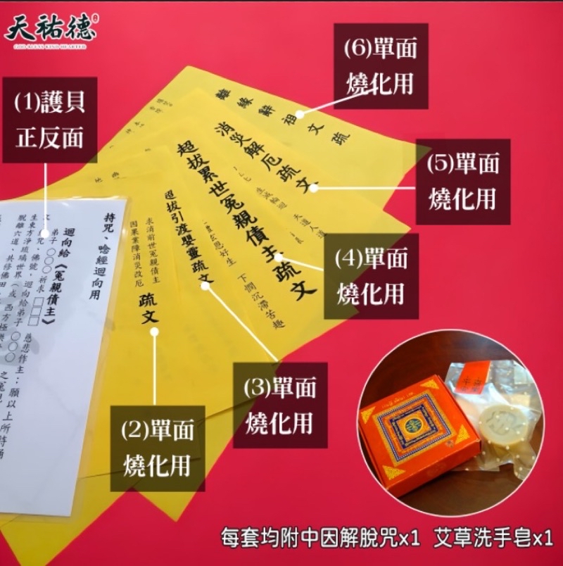 《天祐德》整套疏文及持咒、唸經迴向用❤️6張含艾草皂跟咒輪‼️
