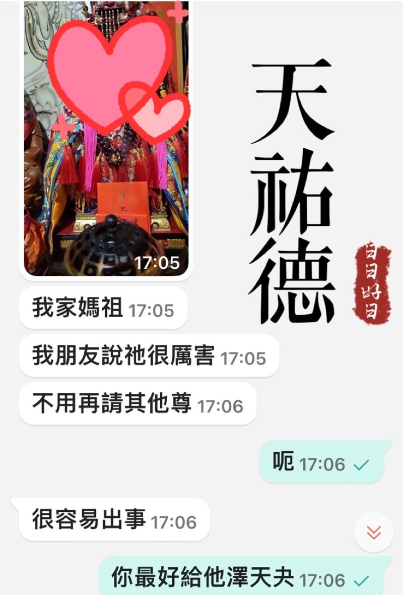 相信今天如果是您的孩子,您也不會輕言放棄的,對嗎?人自己的選擇,自己請的好好善解。有時候自己供的神,要去考慮自己是什麼心念交感而來,心念好,來的就善神幫。