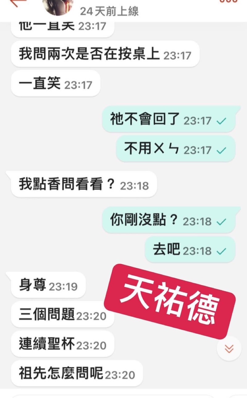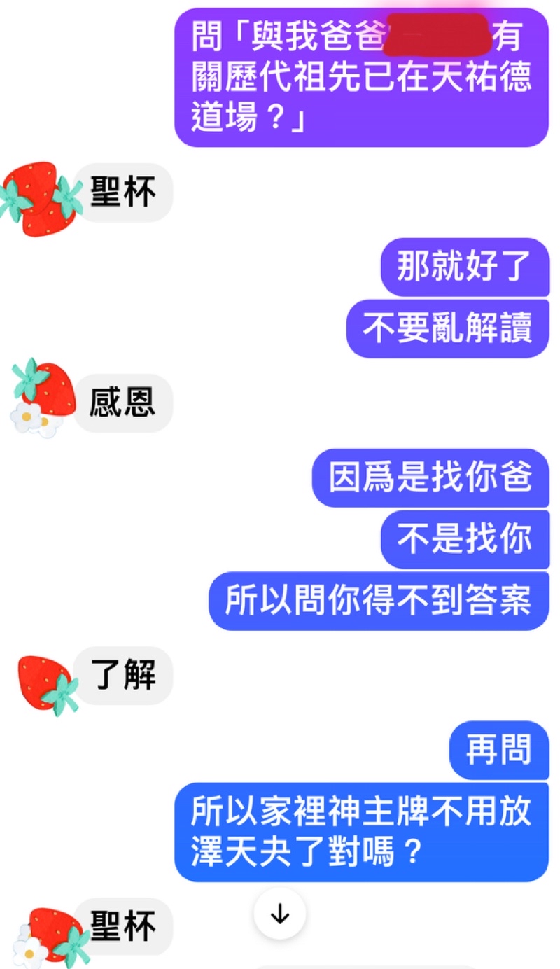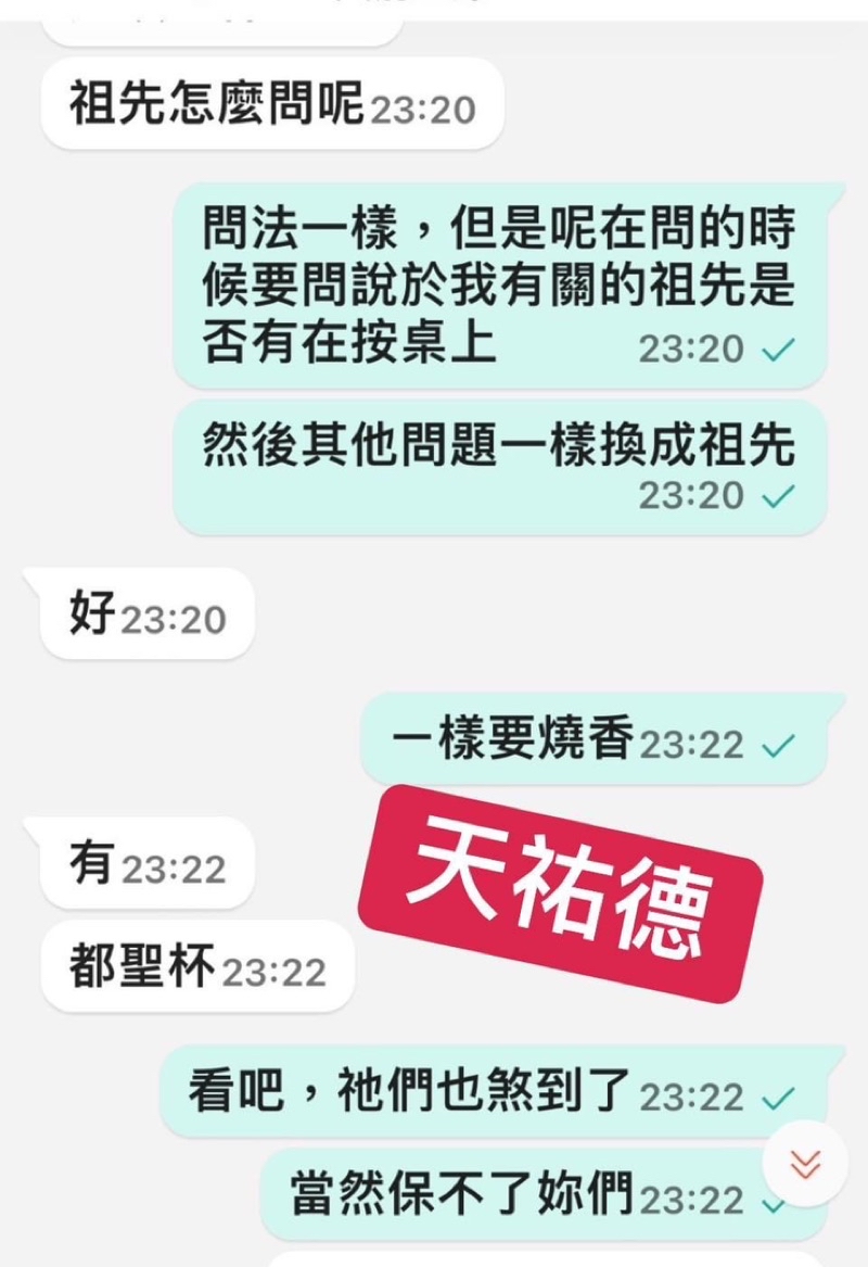 老師跟他說他家的祖先跟神明需要能量跟化煞,請當事人按照老師指導的去躑杯,果然連3杯😌