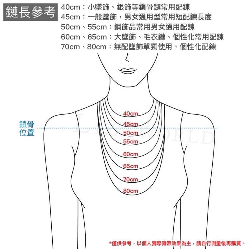 以下為女生可參考的45公分醫療鋼鍊長👇