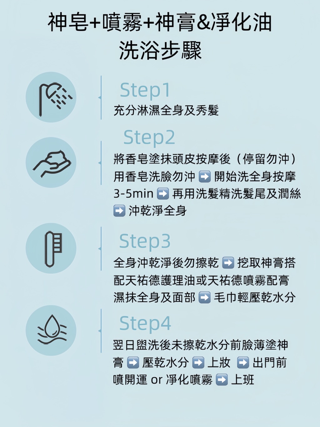 2️⃣洗完澡保養程序🔻先用檀香噴霧噴濕整個臉部,挖一點神膏在手心(也可調凡士林),均勻薄擦在臉上,避開易長痘痘的區域,身體也可以用此法,依此類推。